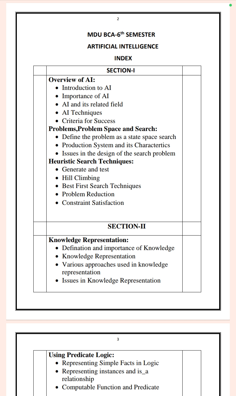 Maharshi Dayanand University | BCA 6th Semester Artificial Intelligence Notes PDF – Complete Printable Notes