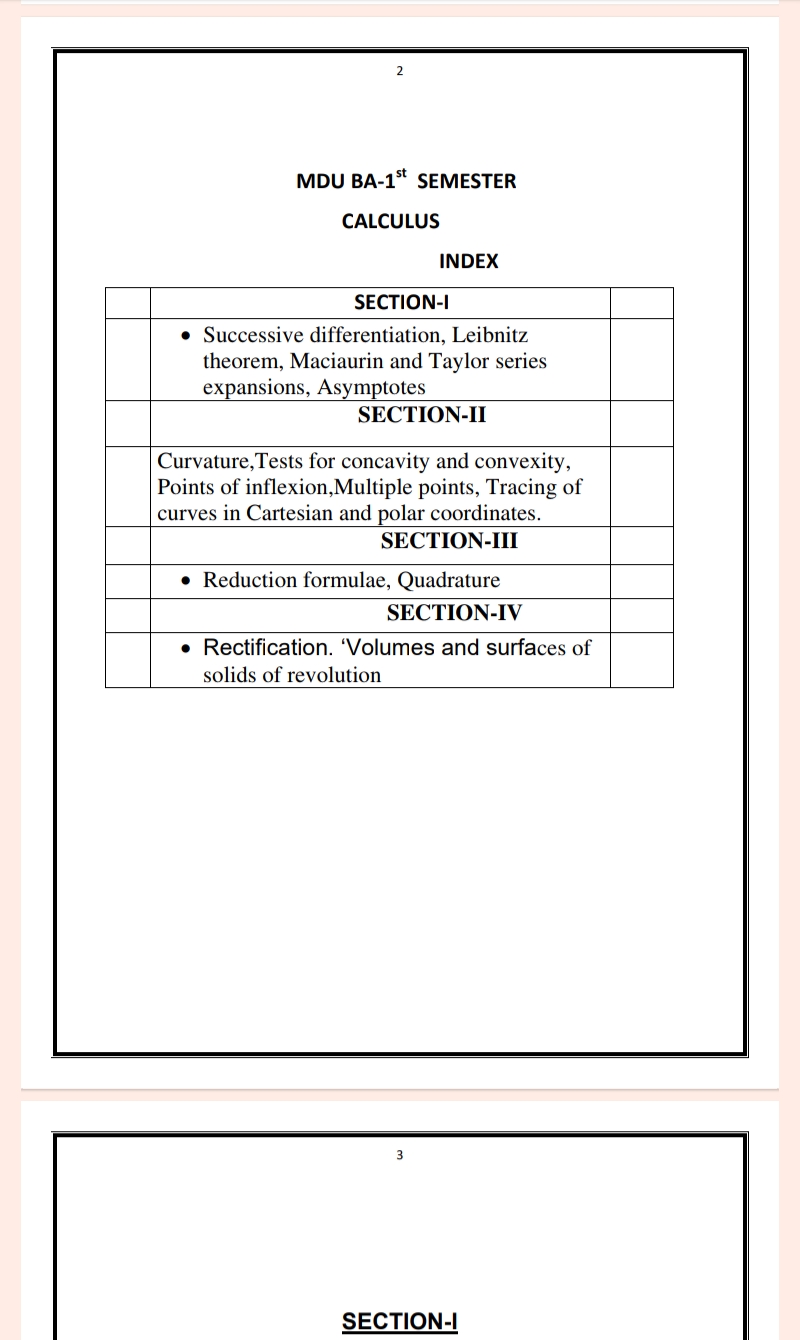 Calculus Notes for BA 1st year in English – Maharshi Dayanand University | Complete Printable Notes