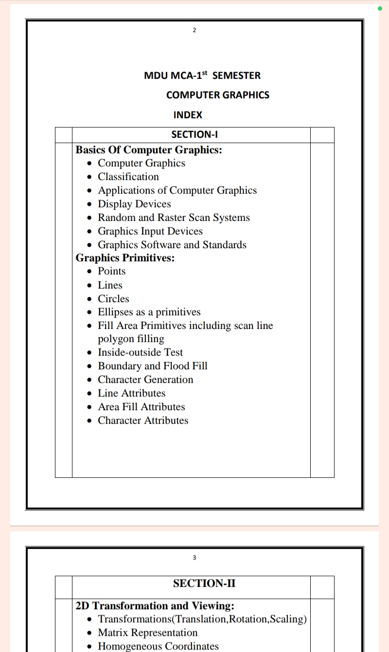 mca notesMaharshi Dayanand University | MCA 1st Semester Computer Graphics Notes in English – Complete Printable Notes