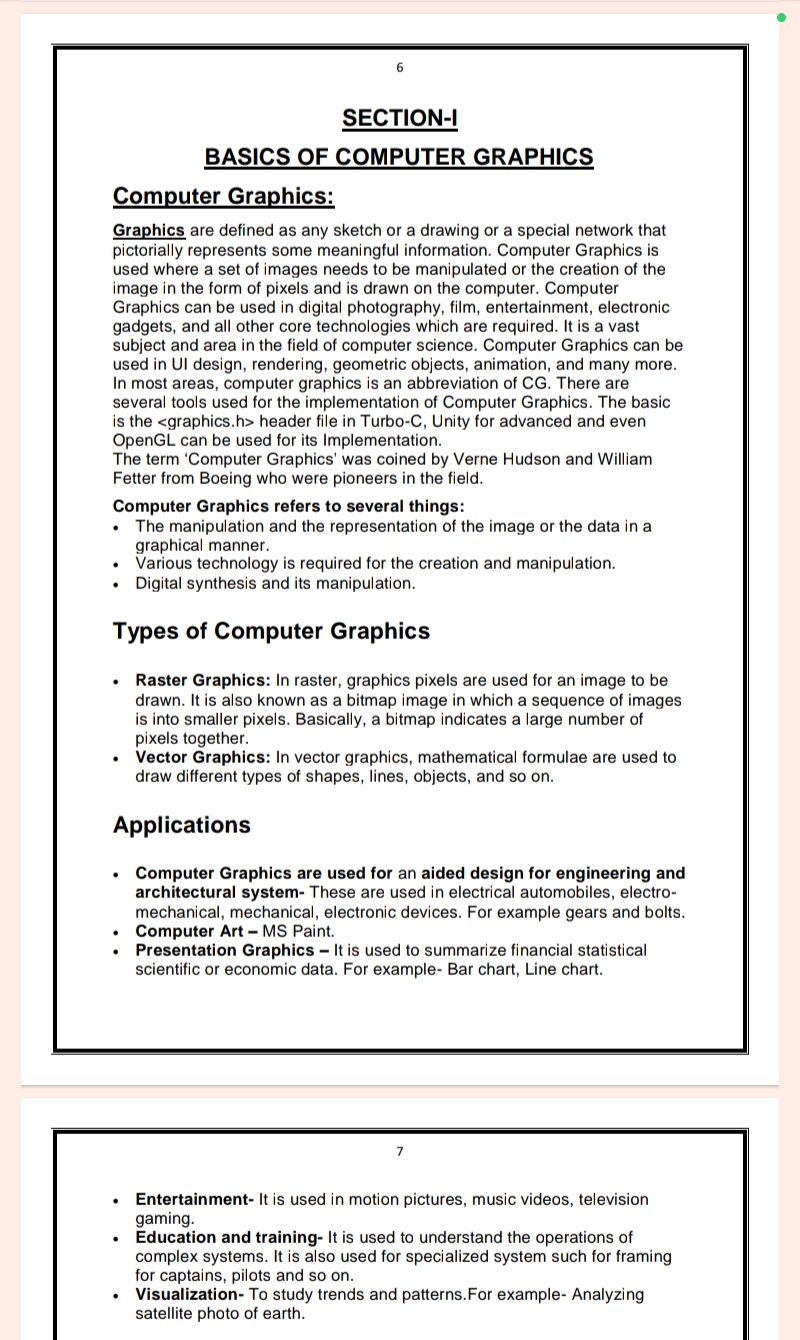 We provide MCA 1st Semester Computer Graphics Notes in easy language and point to point explanation. It contains 365 pages. The size of this note is 6.0 MB.MCA 1st Semester Computer Graphics Notes PDF