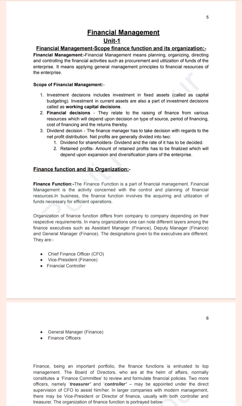 mba notesMBA Second Semester Financial Management Notes PDF Download