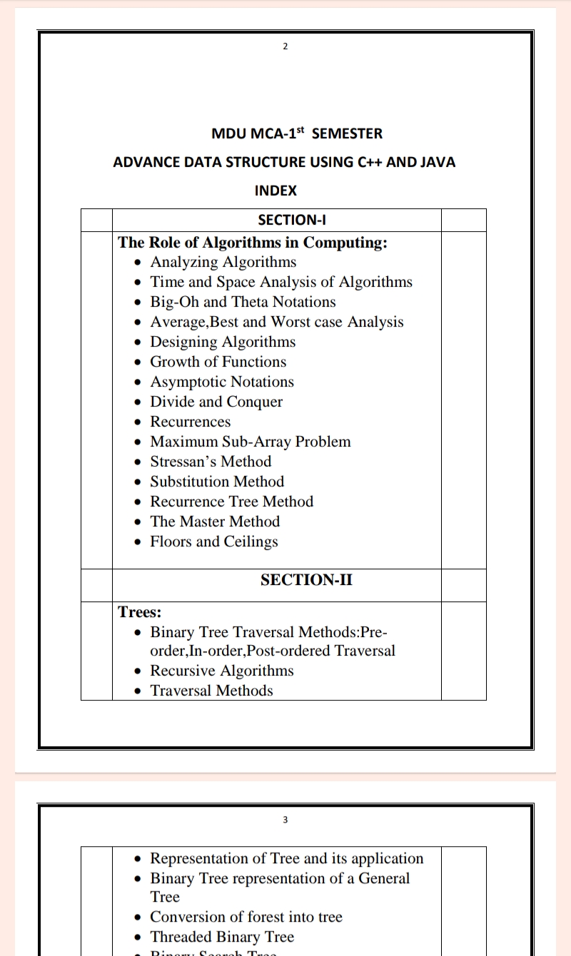 Maharshi Dayanand University |MCA 1st Semester Advance Data Structure Using C++ and Java Notes PDF – Complete Printable Notes