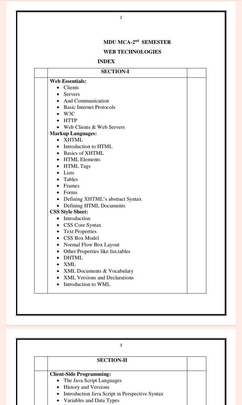 MCA 2nd Semester Web Technologies Notes in English – Complete Printable Notes