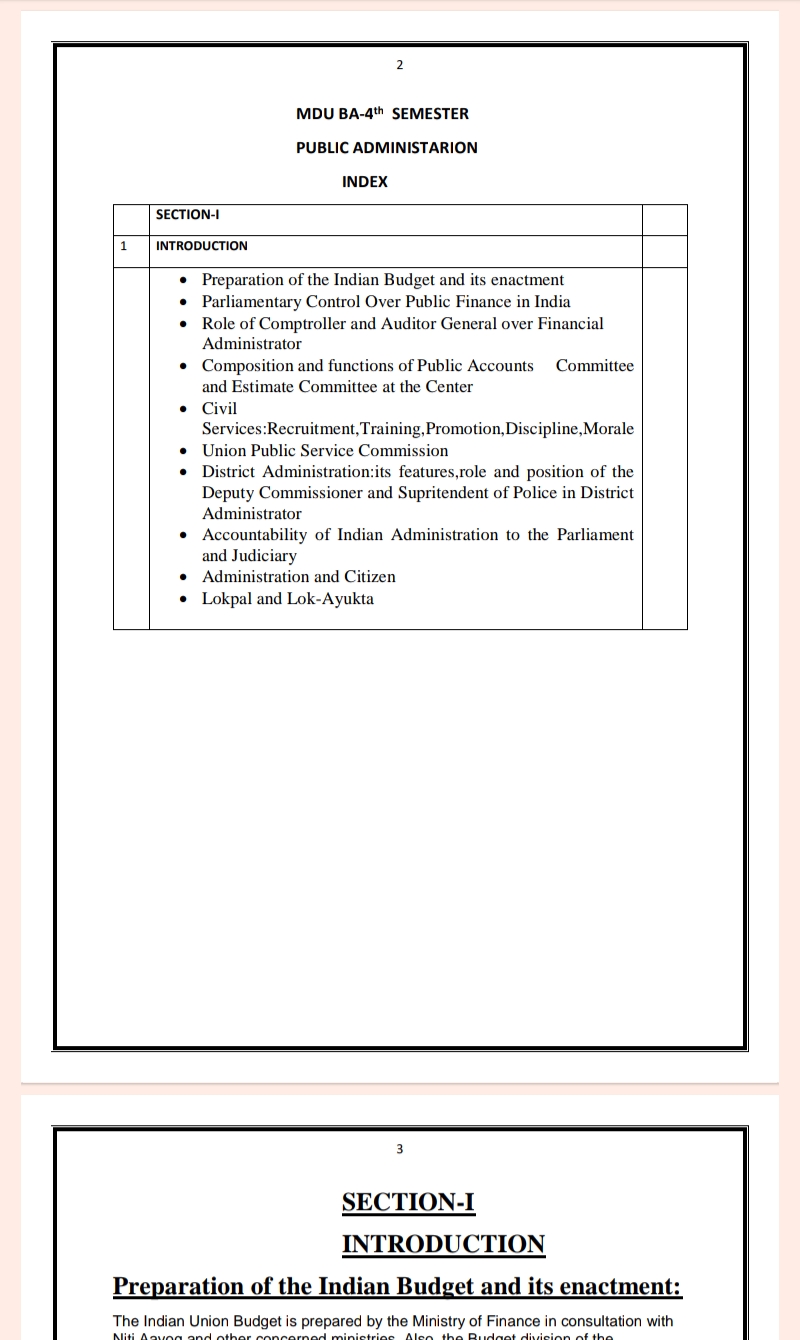 We provide BA Fourth Semester Public Administration Notes in easy language and point to point explanation. It contains 117 pages. The size of this note is 343kb. BA Fourth Semester Public Administration Notes PDF
