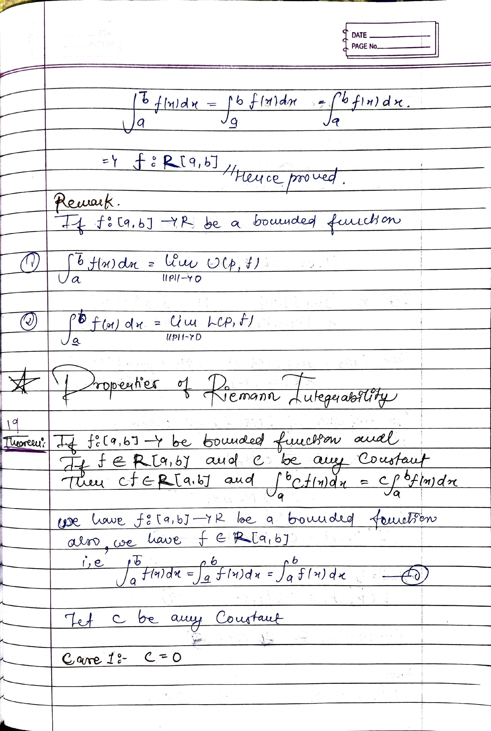 - Upper and Lower Riemann Integrals, Properties of Riemann Integration